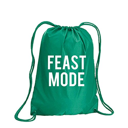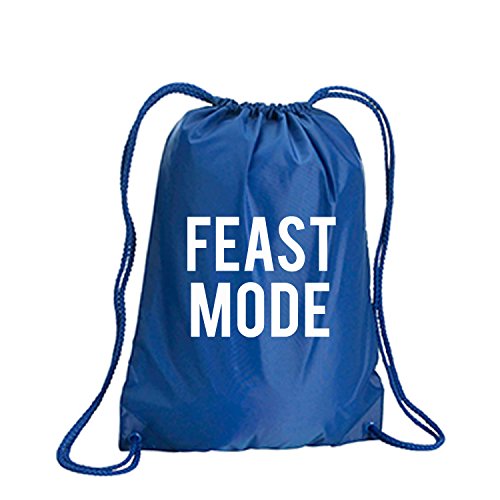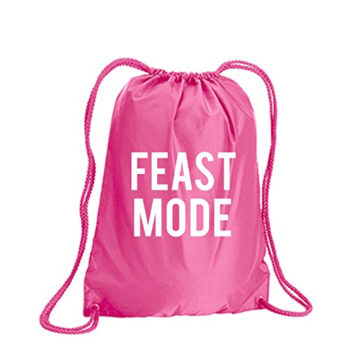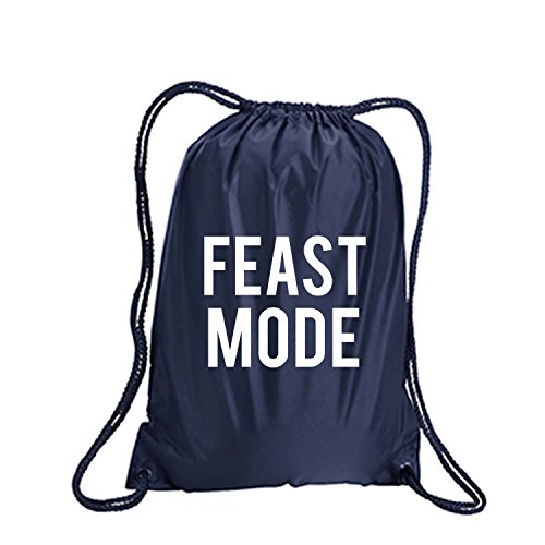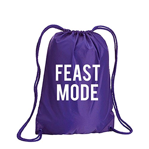 Product Description This durable and stylish nylon tote features "FEAST MODE" on a cinch pack tote with white ink. Bag comes in small and large sizes and is made of a durable 210 Denier nylon and has color-matched draw cords. Printed in the USA on an imported bag. 0