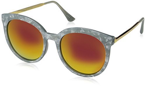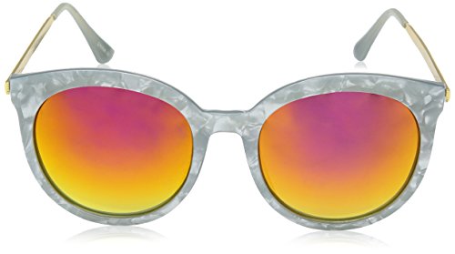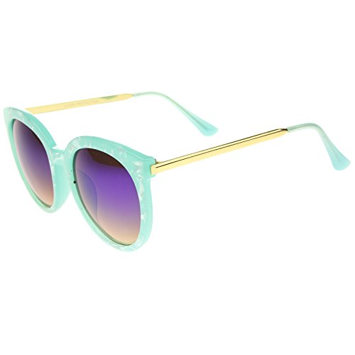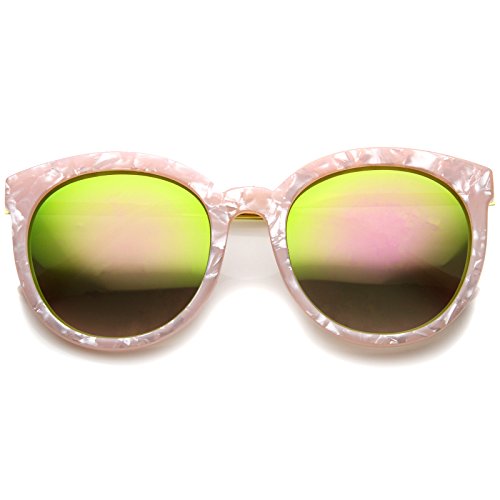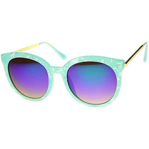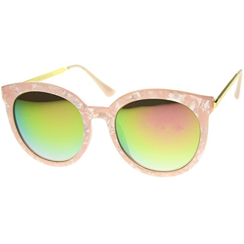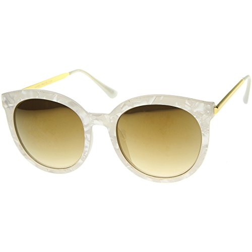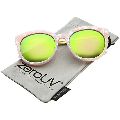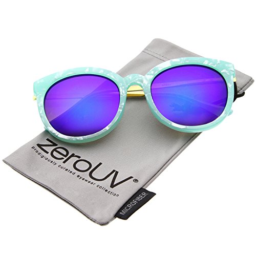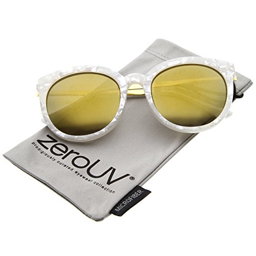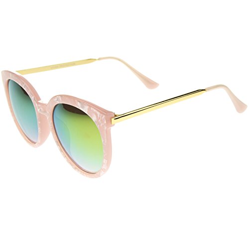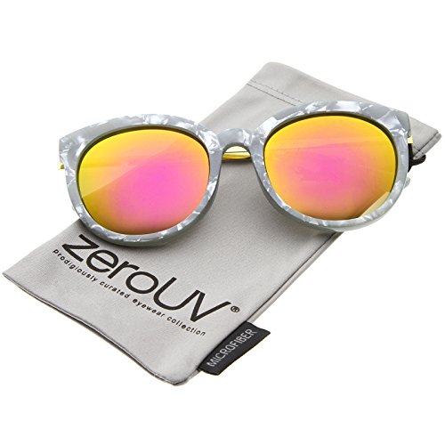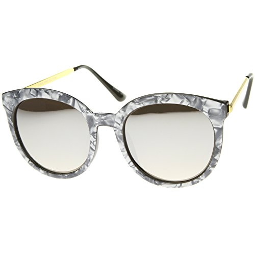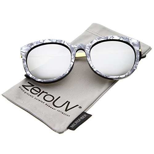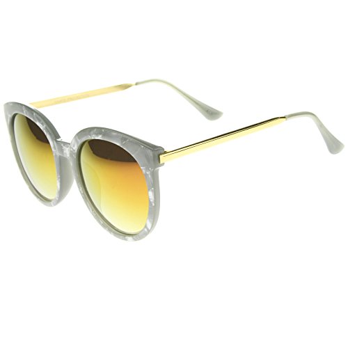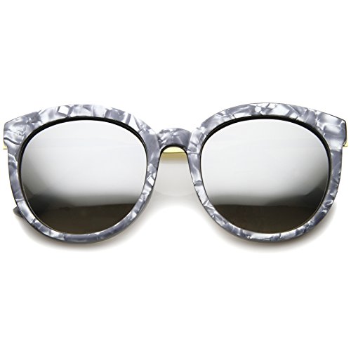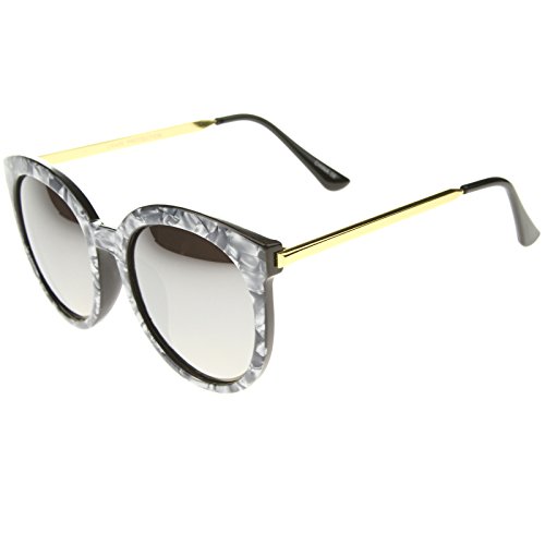 | zeroUV - Womens Oversized Marble Finish Metal Temple Mirrored Lens Round Sunglasses |