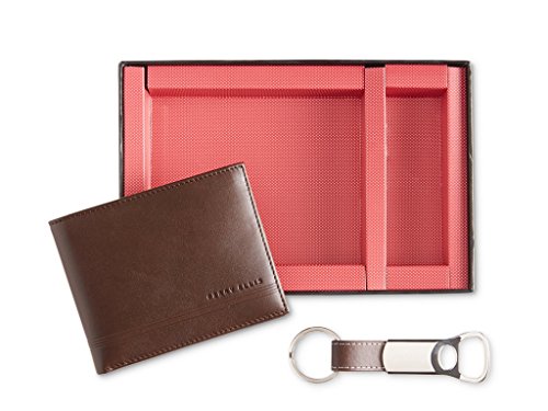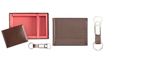 PREMIUM QUALITY MEN WALLET with 100% GENUINE LEATHER inside and out. Gift set Includes leather passcase, fake leather keychain.The set also includes a PU leather keychain with a bottle opener attached.