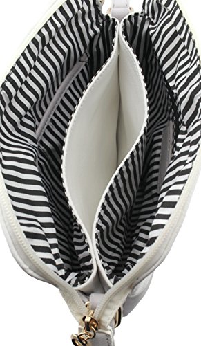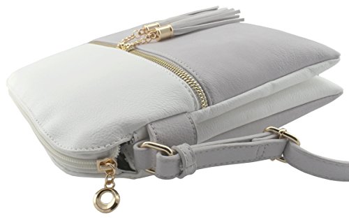 Multi compartments cross body bag. Even 500ml(16.9 fl oz) water bottle fits!!! 1 zipper pocket in front with tassels detail. 3 compartments with top zip closure. 1 zipper pocket and 2 open pockets inside. Roomy and large size(10"L x 9.75"H x 2.5"W) cross body bags!!!Feature