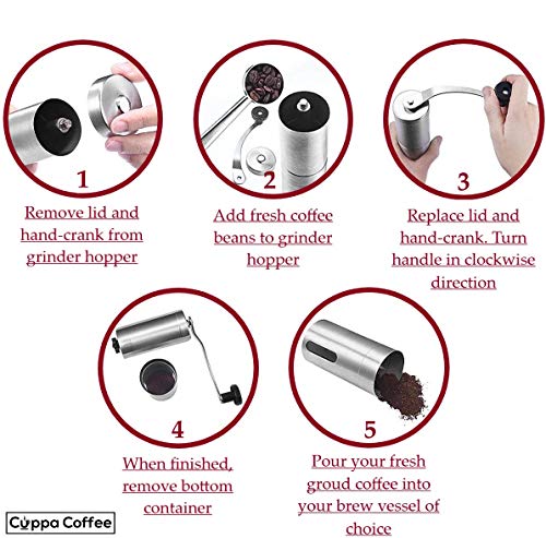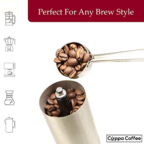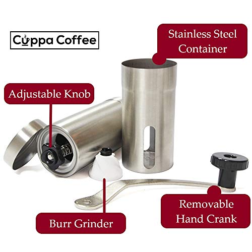 Package Dimensions:9.2 x 2.7 x 2.5 inches Item Weight:11.4 ounces Shipping Weight:11.4 ounces (View shipping rates and policies) Manufacturer:Burk Brands LLC Item model number:Cuppa Coffee Manual Coffee Grinder Date first listed on Amazon:July 11, 2018