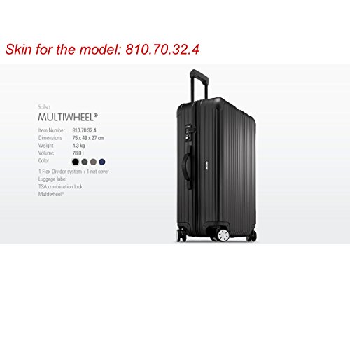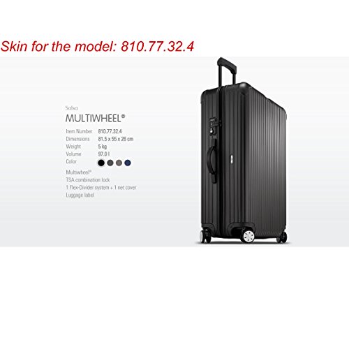 Product Description You need to Know: - This is just a Suitcase Cover , The luggage is not included. - Please make sure the model of your luggage before order, if you don't sure the model, you can find the model code from the tag or the luggage body. - The Cover fit one model only, It is not universal. - Regarding Salsa Series, 811 model is different from 810, The handle is opposite. - Rimowa has New Arrival model which has ELECTRONIC TAG, it is different from the orginal one which don't has ELECTRONIC TAG. So, you must make sure the model of luggage before ordeing. Welcome to contact us if you have any inquiry about the size. Why order the cover for your Riwoma Luggage - It will definitely do a wonderful job to protect our new suitcase from scratches on airport rough transportation,you know, Rimowa Luggage is not Cheap. - Transparent Design, Keep your luggage with original Shape and looking. We Has All Model Cover for Rimowa Luggage. you must can find one for your Suitcase. 0