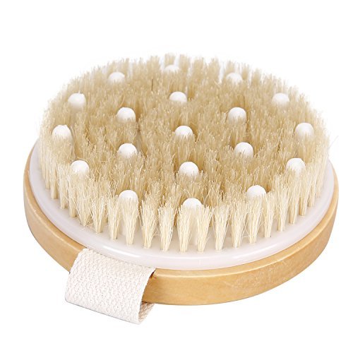 Janrely Dry/Wet Bath Body Brush, Natural Boar's Bristle Massage for Better Exfoliation