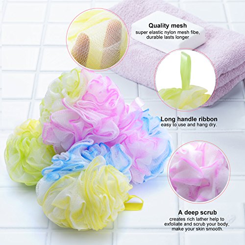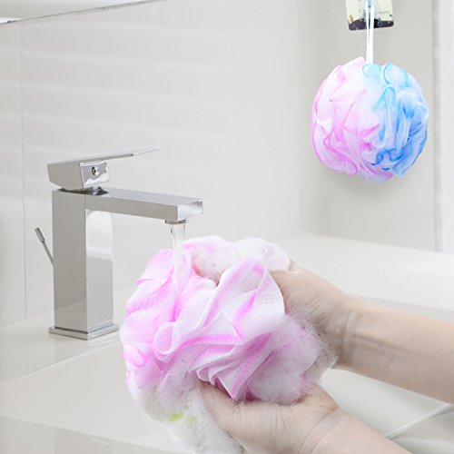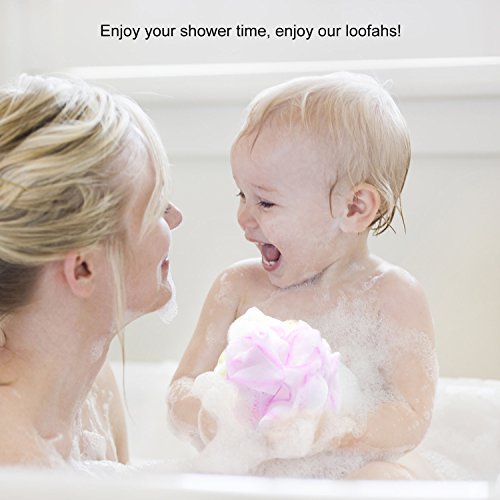 - Premium Sponge--Our Loofah bath shower sponge are made from recycled and environmentally friendly materials,they are healthy and comfortable also can create rich Lather with only a small amount of soap or shower gel ,start enjoy your shower time now .