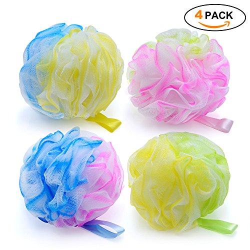 Loofah Bath and Shower Sponge Set of 4 , Exfoliating Mesh Pouf Bath Sponge Ball(60g/each)
