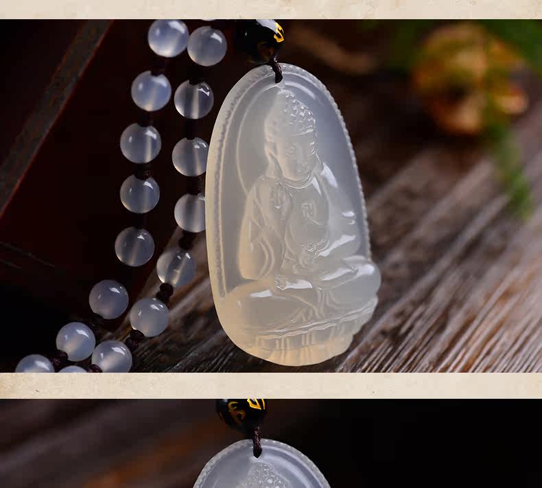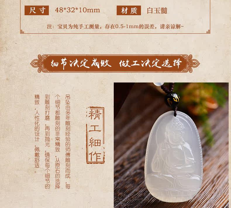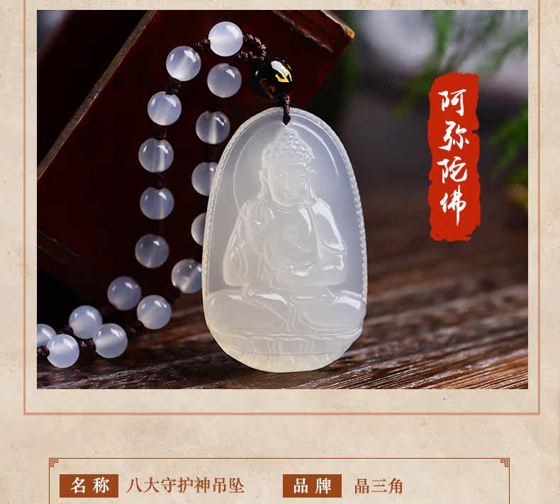 开光天然白玉髓吊坠 阿弥陀佛菩萨生肖狗猪守护神男女款项链饰品