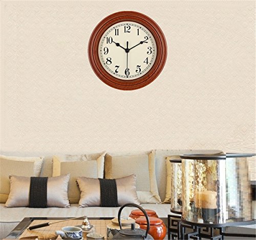 -. Title : Foxtop Silent Minimalist Wall Clock Non Ticking Digital Quiet Sweep 9-Inches Home Decor Round Vintage Resin Wall Clocks (Brown)