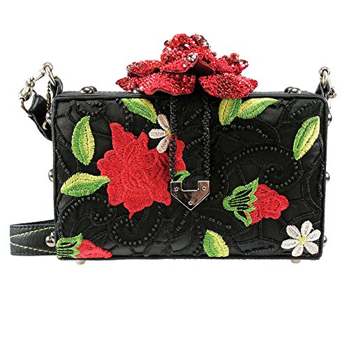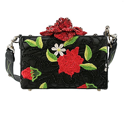 -. Brand : Mary Frances -. Color : Black -. Department : womens -. EAN : 0634010159948 -. Feature : Embroidered and beaded rose lace on vegan leather / Hand crafted 3-D beaded rose / Cross-body strap, magnet flap closure and 1 interior slip pocket -. Model : BAG 15-994 -. ProductGroup : Shoes -. ProductTypeName : HANDBAG -. Title : Mary Frances Sangria Handbag -. UPC : 634010159948
