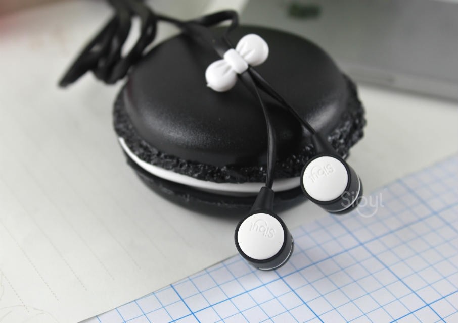 マカロンの形をしたケースとイヤホンのセットです。