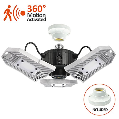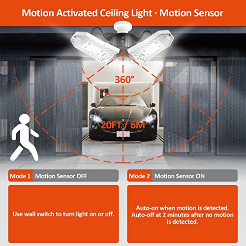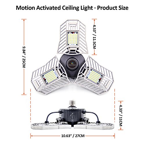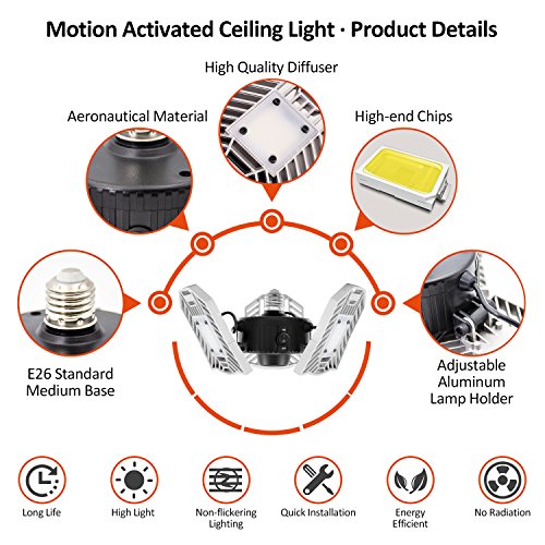 CREATE BRIGHT 60W Motion Activated Ceiling Light for Garage, Warehouse,Workshop,Basement and Others, High Power LED Light Bulb E26 Medium Base 6000 Lumen,6000K Daylight
