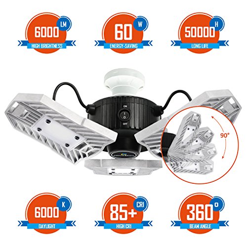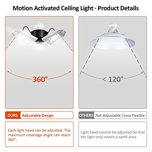 - ▲ADJUSTABLE DESIGN:With 3 ultra-bright adjustable aluminum LED heads and unique wide-angle design,easy adjust to suit your needs.The die-cast aluminum design speeds up Heat dissipation, more solid and more durable.Perfect for using on garage,warehouse,workshop,office,basement,toll station etc.