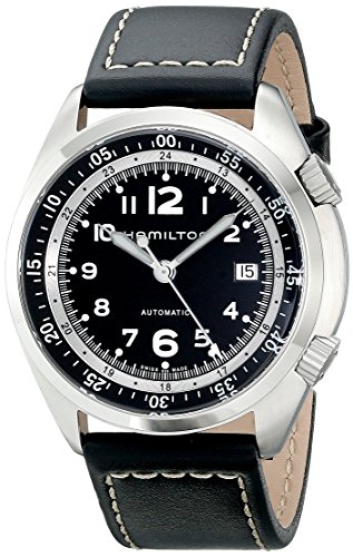 -. Binding : Watch -. Brand : Hamilton -. Department : mens -. EAN : 7640127758557 -. Feature : Round watch featuring black dial with 24-hour display around dial and luminous hands and markers / 43 mm stainless steel case with antireflective-sapphire dial window / Automatic self-wind movement with analog display and 80-hour power reserve / Contrast-stitched leather calfskin band with buckle closure / Water resistant to 100 m (330 ft) -. Label : Hamilton -. Manufacturer : Hamilton -. Model : H76455733 -. MPN : H76455733 -. PackageQuantity : 1 -. PartNumber : H76455733 -. ProductGroup : Watch -. ProductTypeName : WATCH -. Publisher : Hamilton -. Studio : Hamilton -. Title : Hamilton Men's H76455733 Khaki Aviation Stainless Steel Watch with Black Leather Band