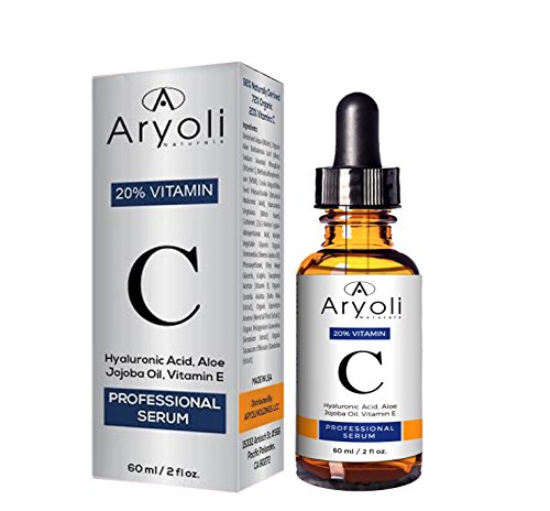 -. Title : Best 20% Vitamin C Serum Double 2 OZ with Hyaluronic Acid, Aloe, Jojoba Oil and Vitamin E by Aryoli Naturals. 98% Naturally Derived, 72% Organic. All Skin Types. Stimulates collagen, Anti Wrinkles