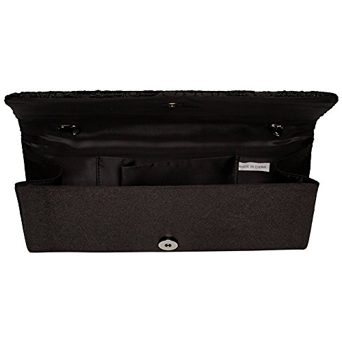 -. Feature : FABRIC - Made from a soft satin lace material, with magnetic snap closure / SIZE - Approximate measurements: 10.43"(L) * 1.77"(W) * 4.72"(H) / FEATURES - Glamorous party handbags avaible 3 stylish that can be used as a clutches, shoulder bags or cross-body bags. / CAPACITY - You can easily fit your cell phone(fit for iPhone 6s plus), cards, money, car keys, small wallet, mirror, lipstick, some makeup etc. / OCCASION - Beautiful clutch bag is perfect for weekend, wedding, evening party, prom, cocktail various parties, night out or formal occasions and so on.