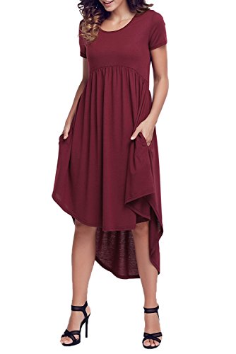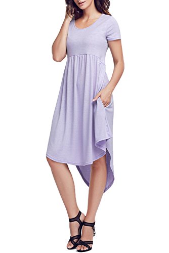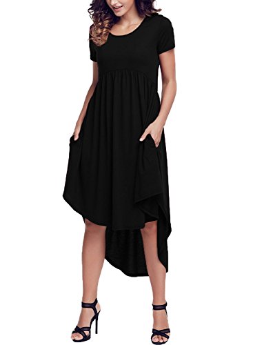 This lightweight, High low dress is perfect for those carefree summer days! round neck dresses short sleeves.