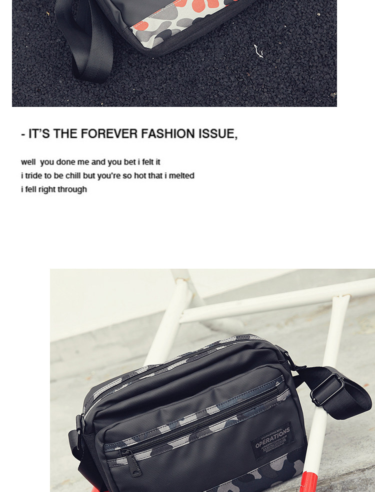 款式材质:包包采用防水料拼接帆布制成,简约实用版型