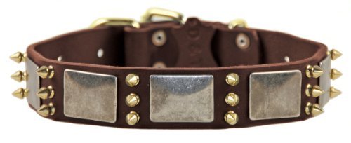 (Dean Tyler)/Pet Supplies/Flea Tick Control/DIRECT FROM USA/Dean Tyler Devilish Della Dog Collar with Plates/Spikes/Brass Buckle, 38 by 1-1/2-Inch, Brown