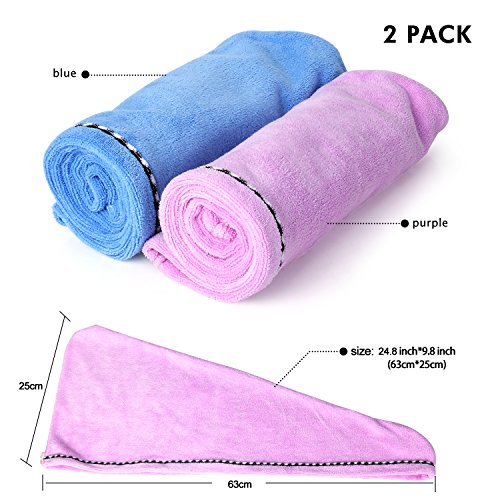 2 Pack Hair Towel Wrap Turban Microfiber Drying Bath Shower Head Towel with Buttons, Quick Magic Dryer, Dry Hair Hat, Wrapped Bath Cap By Duomishu