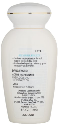 L’Oral Paris Active Daily Moisture SPF 15 Lotion is formulated to help provide your skin with long-lasting, all day moisture and daily SPF 15 protection from the sun’s harmful rays. SPF 15 protection can help shield your skin from the sun’s harmful rays. Pro-Vitamin B5 and multi-conditioning agents can help provide your skin with moisture, so that your skin can feel and look soft and supple. After applying this Active Daily SPF 15 lotion, makeup can be applied easily. L’Oral Paris Active Daily Moisture SPF 15 Lotion is dermatologist-tested for gentleness — making it a great daily moisturizer with SPF 15 for long, busy days. • Active Daily Moisture lotion • Helps provide all day hydration • SPF15 moisturizer • Formulated with Pro-Vitamin B5 and multi-conditioning agents for soft skin Apply Active Daily Moisture SPF Lotion to clean skin in the morning. Smooth gently onto face and neck. For external use only, not to be swallowed. Avoid contact with eyes. If contact occurs, rinse eyes thoroughly with water. Discontinue use if signs of irritation or rash appear. If irritation or rash persists, consult a doctor. Keep out of reach of children. In case of accidental ingestion seek professional assistance or contact a poison control center immediately.Feature