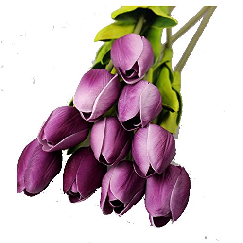 10Pcs Artifical Flower Real Touch PU Tulips Bouquet Artifical Artificial Topiaries Home Room Party Decor (Purple)