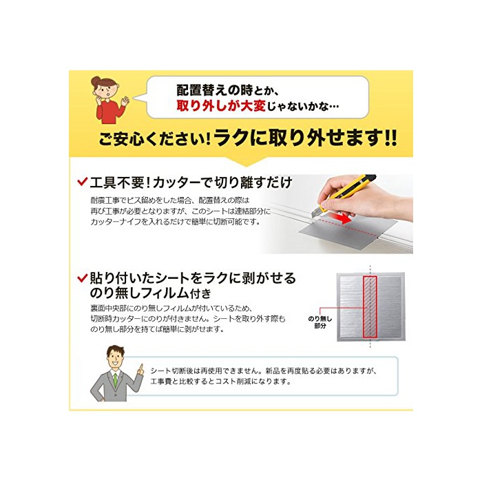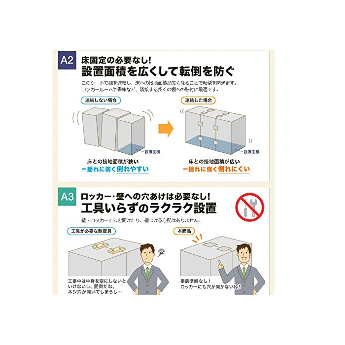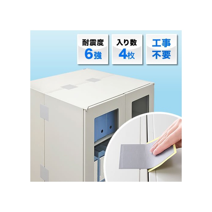 원본상품명: サンワダイレクト 家具?倒防止 連結固定シ?ト 耐震度6? 【シ?ルを貼り、棚の?倒を防ぐ】 工事不要 4枚入り 200-QL008