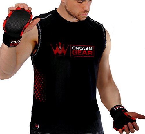 - Feature : EXTRA GRIP FOR EVERY LIFT - Crown Gear Conquest Grips Pads Comes With Built-in Wrist Support and Industrial quality Velcro fastening - Specially designed to allow the athletes to feel the weight better. Designed to improve grip without sweat, the grip pads are made of tough, non-slip material that's easy to handle. Each pad is double sided, providing grip against the bar and also against your palms. / EASY TO PUT ON AND ADJUST - Many weightlifters struggle to find gloves that suit. Sweat can also be a major issue, particularly if you're working out in a hot or humid environment. Crown Gear has developed the Conquest grips to provide a practical and effective alternative. The pad remains settled in your palm, but lets you easily shift your stance and grip in a natural way. / STAY SAFE WHILE YOU BEAT YOUR TARGETS - Conquest grip pads remain firmly in the palm, whether you're doing a pull up, a deadlift or a barbell curl. Slips are a leading cause of injury during weightlifting sessions, often due to sweat build up or weakening grip. As each grip pad is secured to the wrist support with industrial quality stitching, there's no chance they'll slip away. / PREVENT CUTS AND CALLUSES WITHOUT WEARING GLOVES - Crown Gear Conquest weightlifting Grips pads are designed to handle the toughest workout. Made from high-quality fabrics, they've been tested in real gyms and put through their paces by weightlifters. Each material has been carefully selected to provide the right mix of tough and soft, so that function and grip are strengthened while skin is protected from chafing and calluses. / Crown Gear Conquest Grips Pads - One Size Fits All - Comes with 1 Year Replacement Guarantee. ORDER NOW>>