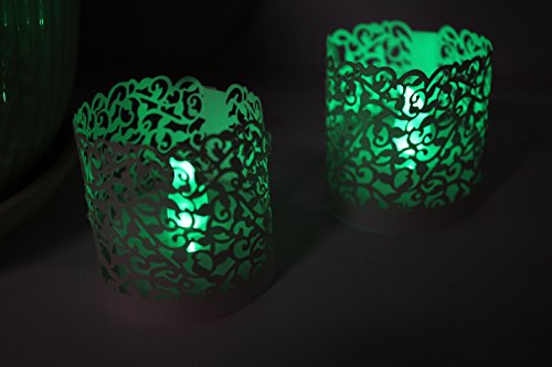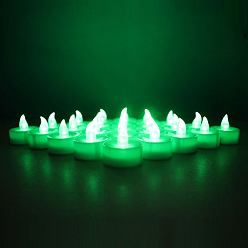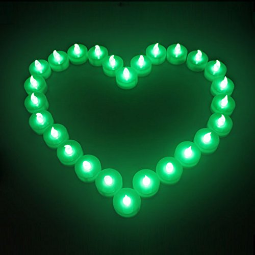 *Note:12 x LED candle tea lights in White Candle Body and GREEN lights, provides realistic GREEN flickering effect