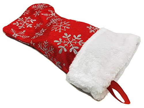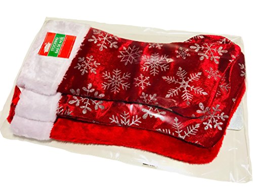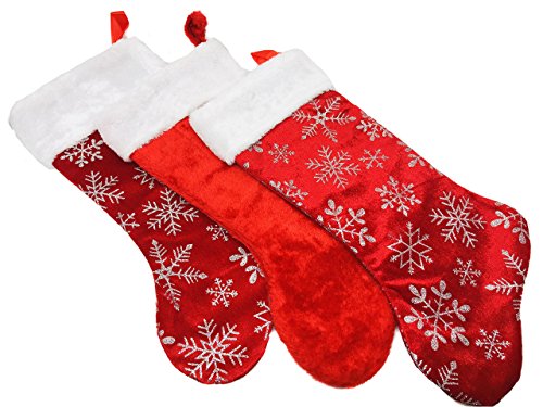 Set of 3: Christmas Stockings Snowflakes Velour Red 17.5" Fluffy White Cuffs (2-pack)/ Bonus: 1x Classic Red Stocking Decorations Stocking Stuffers …