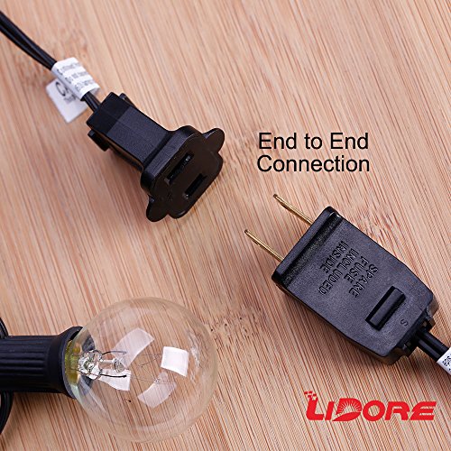 7 globe Clear Bulbs design with Black Cord. Incandescent bulbs light up with warm white ambiance. G40 bulbs have candelabra E12 socket base, UL listed. You can change any light bulb with E12 socket base. Like C7, G50. Accessory parts. Each string light is package with 1 spare fuse. Incandescent bulb is fragile, please handles with care.