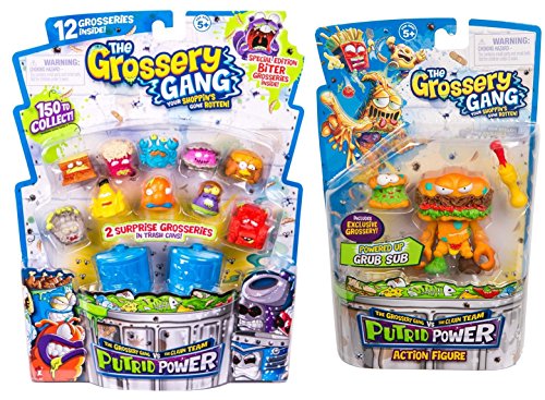 -. Binding : Toy -. Brand : Grossery Gang -. EAN : 0763979847464 -. Feature : Grossery Gang Series 3 Putrid Power Set - Includes Grossery Gang Grub Sub action figure PLUS 12 pack of mini figures / Grub Sub is the force with the sauce! He's ready to sandwich anyone who gets in his way! / Each Action figure comes with its own Exclusive Grossery Gang weapon and an EXCLUSIVE Grossery mini figure / All action figures are fully articulated and work with all three playsets. / Also included is a 12 pack of Grossery mini figures - will you find the Special Edition Biter? -. IsAdultProduct : 0 -. Label : Moose Toys -. Manufacturer : Moose Toys -. ProductGroup : Toy -. ProductTypeName : TOYS_AND_GAMES -. Publisher : Moose Toys -. Studio : Moose Toys -. Title : Grossery Gang Season 3 S3 Putrid Power 12 Pack PLUS Grub Sub Figure! -. UPC : 763979847464