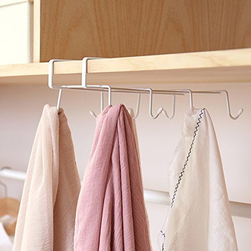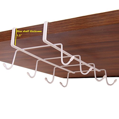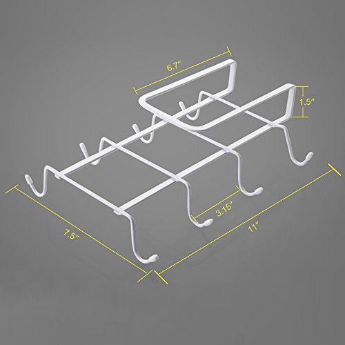 The mug holder under the shelf of a cabinet, can store up to 8 mugs or tea cups, most of kitchen stuffs can find their place on the rack. Also a closet organizer storage for ties, belts, scarves and hand bags