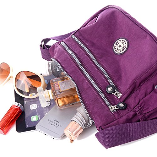 Material: nylon, durable and waterproof Shape/pattern: As picture shows Function: handbag, shoulder bag and cross-body bag? Color: Black/ Navy blue/ Purple/ Rose Size: 27cm(L) * 14cm(W) * 23cm(H) , Shoulder Strap:About 140cm Notice:The handbag color may vary slightly from the online image due to monitor color settings.