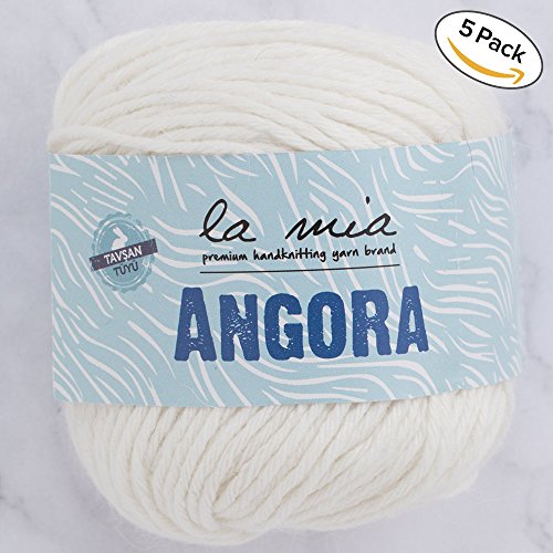 5 Ball La Mia Angora Wool Total 8.8 Oz. Each 1.76 Oz (50g) / 136 Yrds (125m), 15% Angora, Light-Dk Premium Yarns, White - L001