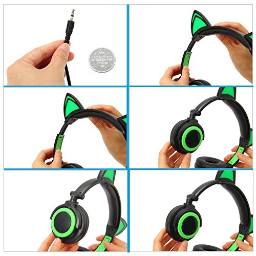 Specification of Teetox glowing car ear headphones: Type: Creative Personality Cat Ears Headphones with LED Flash Light