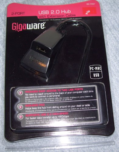 GIGAWARE 2 PORT USB 2.0 TRAVEL HUB WITH A NON SKID BASE BLACK-26-1697 UPC#040293895327