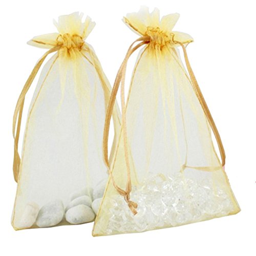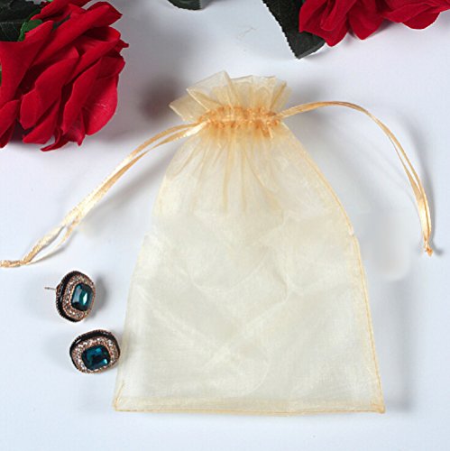 100Pcs Organza Drawstring Jewelry Pouches Bag Party Wedding Gift Bags Candy Mesh Favor Bag 4X6 Inches Gold