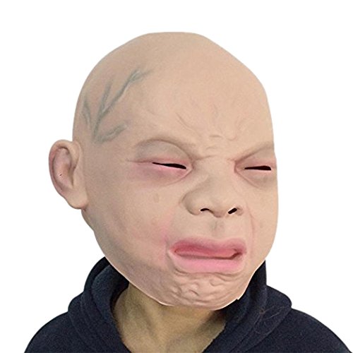 Fellibay Baby Crying Halloween Mask Party Latex Mask Rubber Creepy Face Head Mask Halloween Party Costume Decorations(Cry Baby)