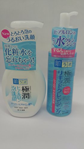 HADALABO Gokujyun Hyaluronic Acid Liquid Makeup Remover 6.8oz/120ml and Gokujyun Bubble Facial Cleanser Set