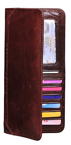 -. Feature : Genuine Leather: Made of genuine leather, and it is skilled line finish, wear-resistant and durable. / Size: Its size19*9.5*1cm. It is easy to put into your handbags, backpacks or other bags, or just hold in your hands when going outside. / Large Capacity: 12 card slots, 3 compartments for cash, and one display window, enough space for daily use. / Ultra Slim: The wallet is designed to be ultra slim, only 1cm thick. It is easy to carry and it don't take much place, easy to put into your bags.