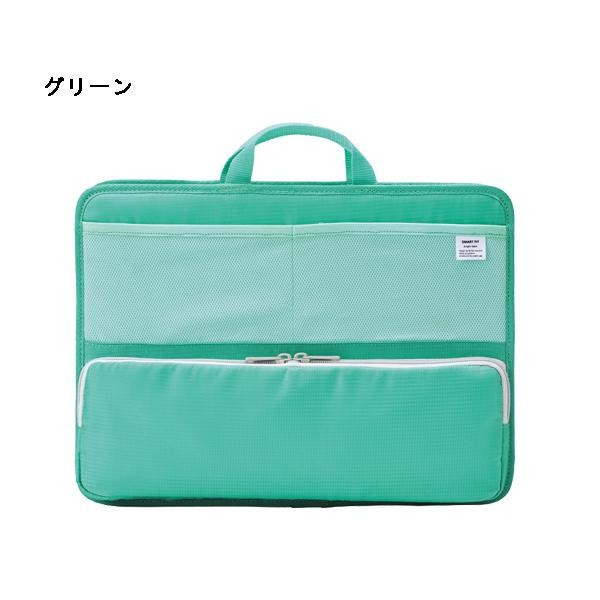 底板を使えば自立してくれるので、作業スペースを有効活用できるバッグインバッグです。マチ部分を折りたたんで、スリムなバッグインバッグとしても使えます。 |
