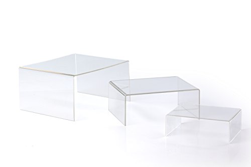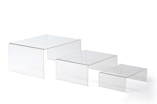 Jusalpha 3 Piece Large Deluxe Acrylic Multipurpose Riser-Jewelry-Cosmetic Product Display Rack -Serving Stand (Clear)