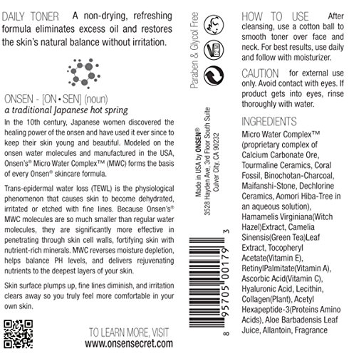 - ✅ POWERFUL REJUVENATING ACTION - Onsen Secret Daily Toner penetrates through skin cell walls, fortifying their depths with safe, healthy ingredients. After a few days, skin surface plumps up, fine lines diminish & irritation clears away like magic.