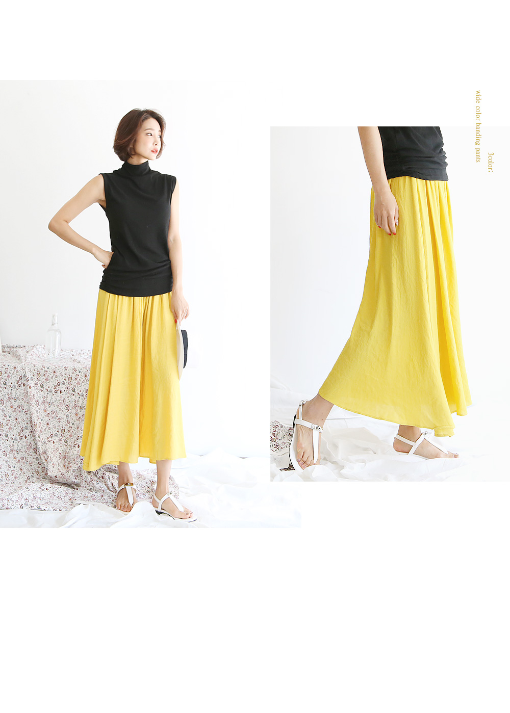 - Detail옐로우 오렌지 블랙와이드한 핏감으로 시원하게 즐기실 수 있는찰랑찰랑한 훌 팬츠입니다밑위가 길게 나온 편이라 롱 스커트를 입은 듯 멋스러우며팬츠라 활동성은 더 좋은 제품입니다무엇보다 와이드한 핏으로 체형커버에 탁월하며넓은 허리 밴딩으로 미운군살은 잡아주며편안하게 즐기실 수 있습니다풍성한 실루엣이 드라마틱한 연출을 자아내며가벼운 외출부터 홈웨어로도 제격입니다