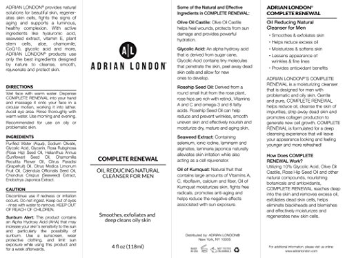 Adrian London Complete Renewal Oil Reducing Natural Cleanser For Men, 4 Ounce