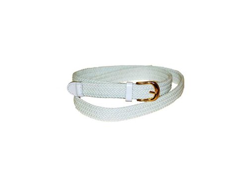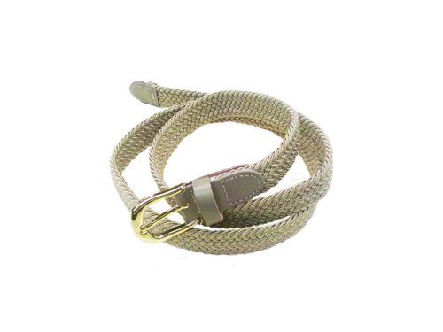 Product Description Casual Narrow Braided Stretch Belt with Gold Buckle and Leather Tip. Measures: 1" Wide. Sizes are: X-Small 26" -28", Small 30"-32", Medium 34"-36", Large 38"-40" and X-Large 42"-44". 0