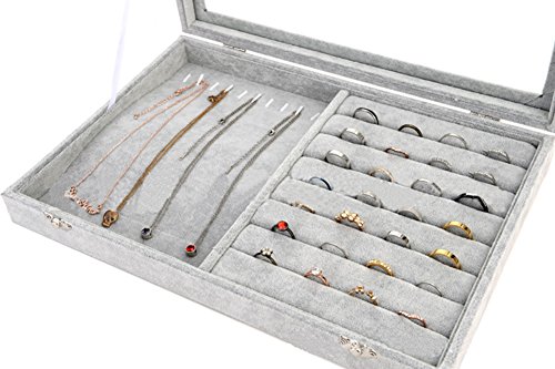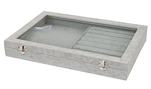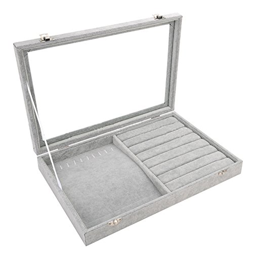 Tray dimensions : 13.78" x 9.45" x 1.96"/35cm*24cm*5cm (L x W x H) Package included:Jewelry Tray x 1 (jewelry not included) Materials: Velvet, Color: Gray