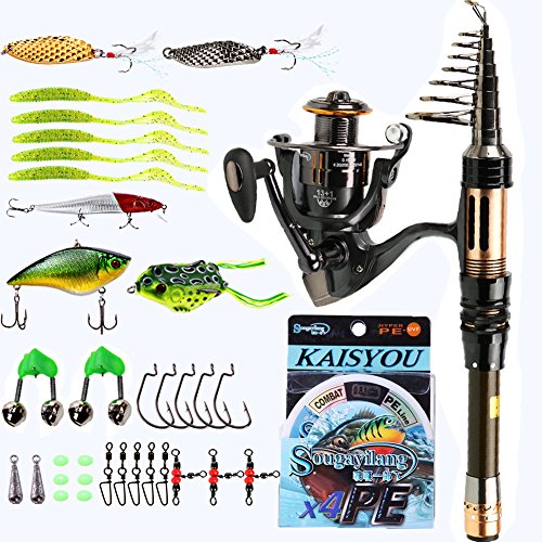 -. Feature : 1.PLEASE NOTE THAT: We Provide 2 Kinds Combos for you.THE SIZE OF "+FULL KITS" IS INCLUDING THE LURES, LINE AND OTHER ACCESSORIES(SHOW IN THE PICTURE), FISHING ROD+REEL:ONLY THE FISHING ROD AND REEL,Just Choose What You Need From "select" You Will Get The Follow Goods. / The Telescopic Fishing Rod Is Portable, and Mini Closed Length Design Is Convenient Carrying Around,Allow You to Travel Fishing and Enjoy Fishing Whenever and Wherever You Want / The Fishing Rod Made by Elastic and High-density Carbon Fiber,Make Your Fishing Pole Hard & Durable. / The Fishing Reel Is Super Light, Smooth, Powerful,Fully Adjustable Cast Control with Sound.S-curve Oscillation System for Very Good Line Winding .Aluminum Spool with High-tensile Gear. / Best Suitable for Fishing From The Shore, Lake and Pond on Trips and Vacations. An Ideal Gift for Fishing Enthusiasts or Collectors.If Any Problem about The Product , Please Contact Us Firstly and Our Customer Service Will Solve It for You Soon.