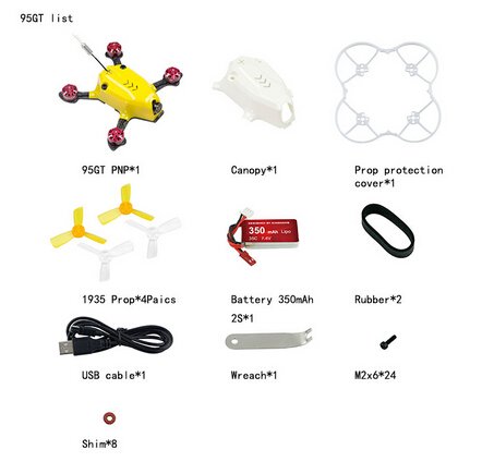 구성 명(이름): 95gt 휠 베이스: 95mm 중량: 50]를 선택합니다.2G 모터: 11037800KV 프로펠라: 1935( 48.26mm 팩키지 중량: 250.4G ESC : 4in110A BLHEL은 multishot,독파하고, Dshot VTX : 25mw 16ch 카메라: 800tvl 150° 입력 전압: 2s 리시버: dsm2( Spektrum )