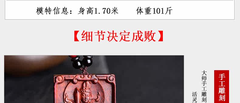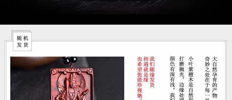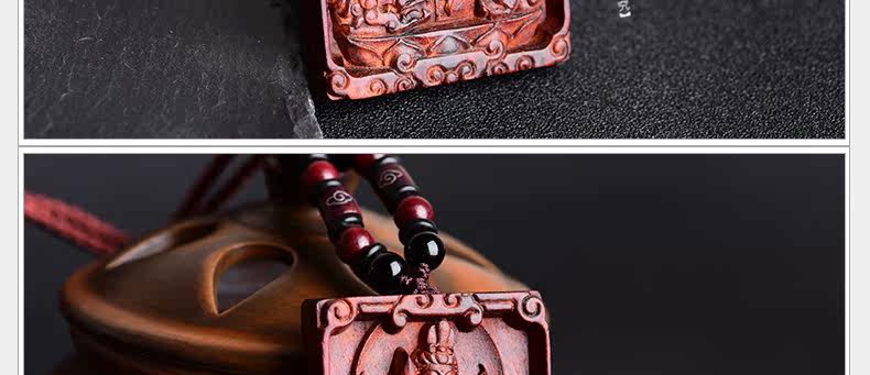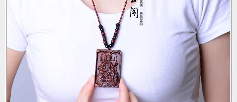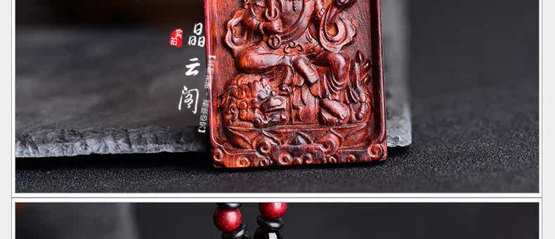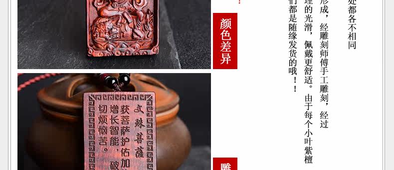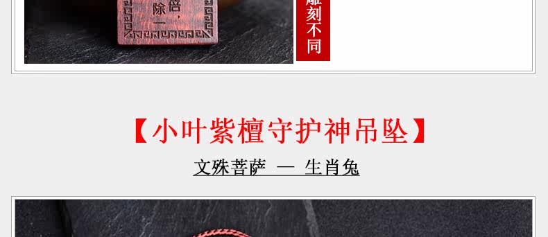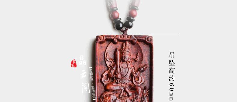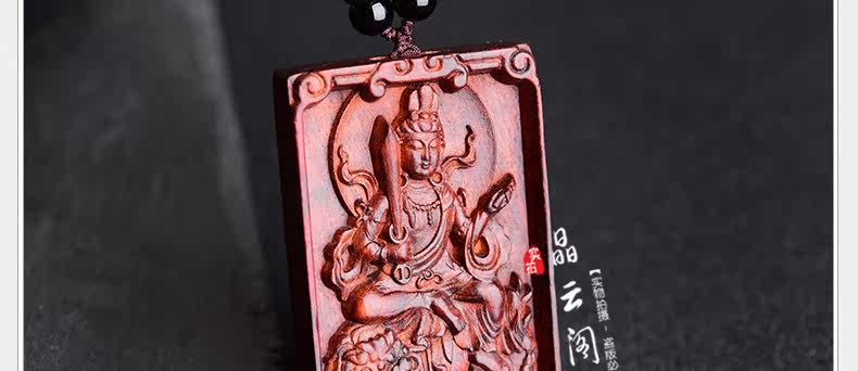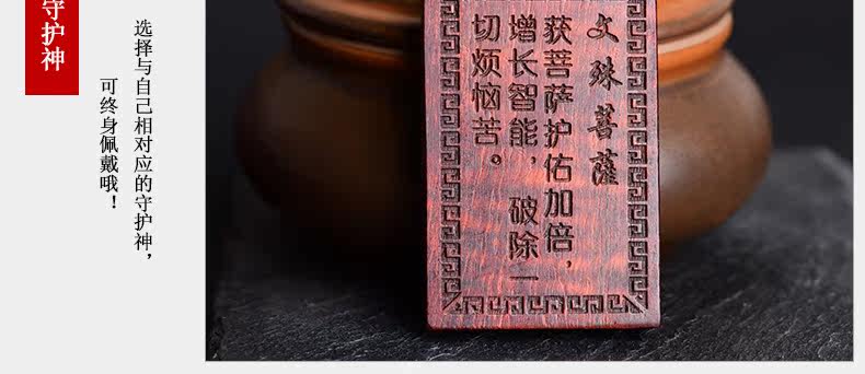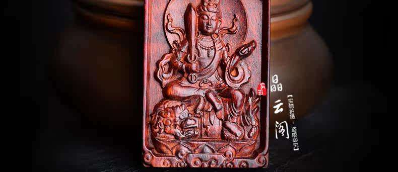 开光小叶紫檀生肖八大守护神吊坠 文殊菩萨属兔本命佛项链挂件