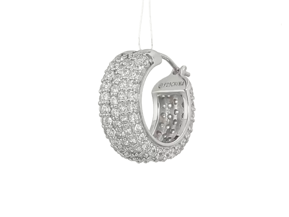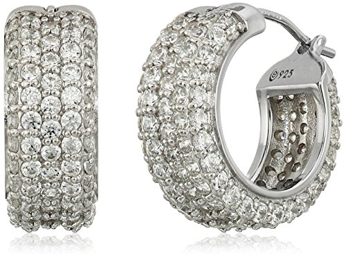 Platinum-Plated Sterling Silver Swarovski Zirconia All Round Pave Huggie Hoop Earrings